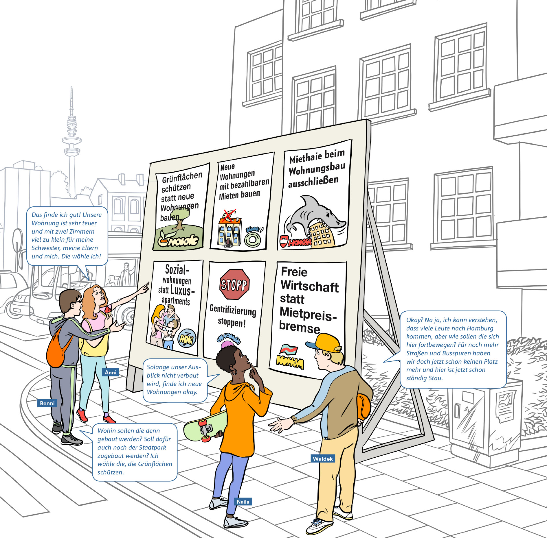 Wir hoffen, dass das Unterrichtsmaterial mit vielen konkreten Beispielen aus dem Hamburger Alltag der jungen Bürgerinnen und Bürger auch über die Wahlen hinaus eine weite Verbreitung und Nutzung in den Hamburger Schulen finden werden.